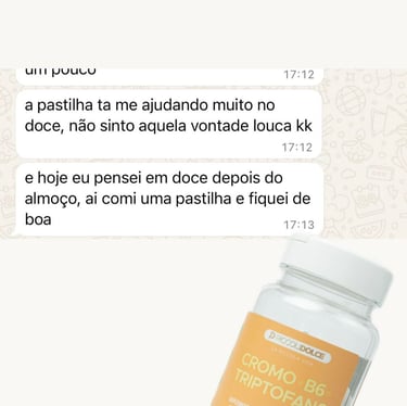 Com esse propósito, ela idealizou e desenvolveu, ao longo de 2 anos de pesquisas, a primeira pastilha redutora de ansiedade do Brasil. Uma solução pioneira que une ciência, ingredientes naturais e praticidade, ajudando a controlar a ansiedade e a compulsão alimentar de forma leve e eficaz.